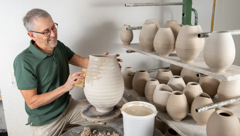 Bag hvert værk ligger mange lag af arbejde - fra den første hånddrejede form til det færdigt brændte emne. Intet er masseproduceret, og de små variationer i form, farve og overflade er en bevidst del af udtrykket.